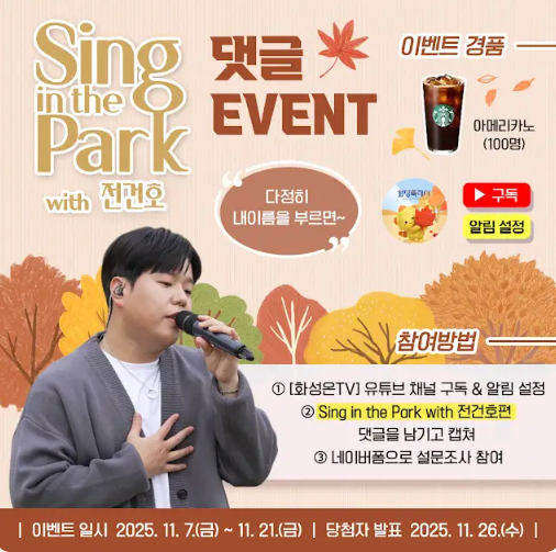 [#À̺¥Æ®] Sing in the Park with Àü°ÇÈ£ ´ñ±Û EVENT 🎉